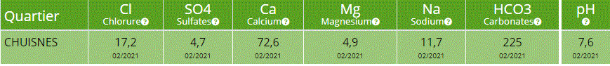Parmi les sels minéraux principaux de l’eau on distingue le calcium, le magnésium, le potassium, le sodium (on met de côté le fluor) sans oublier le bicarbonate et le sulfate. Il n’existe pas de norme nationale sur la quantité de sels minéraux dans l’eau traitée en particulier le calcium et magnésium (CaCO3) dont la présence oscille entre 5% et 15% et qui explique parfois l’aspect calcaire de celle-ci (calcaire = calcium).